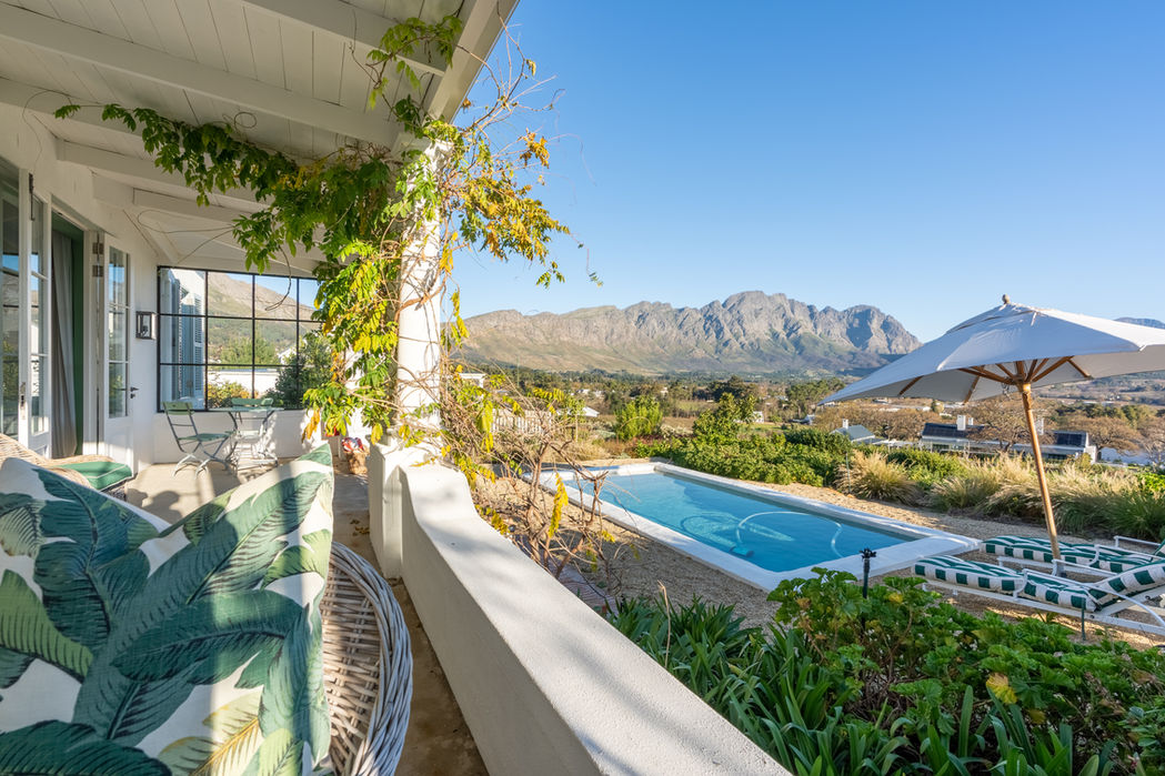 Our Orchard Three-Bedroom Cottage is a luxury self‑catering retreat set in a tranquil, manicured garden with sweeping views of the Franschhoek mountain range. Stylishly furnished and fully equipped for comfortable independent stays, the cottage offers an intimate, private escape where guests can unwind.